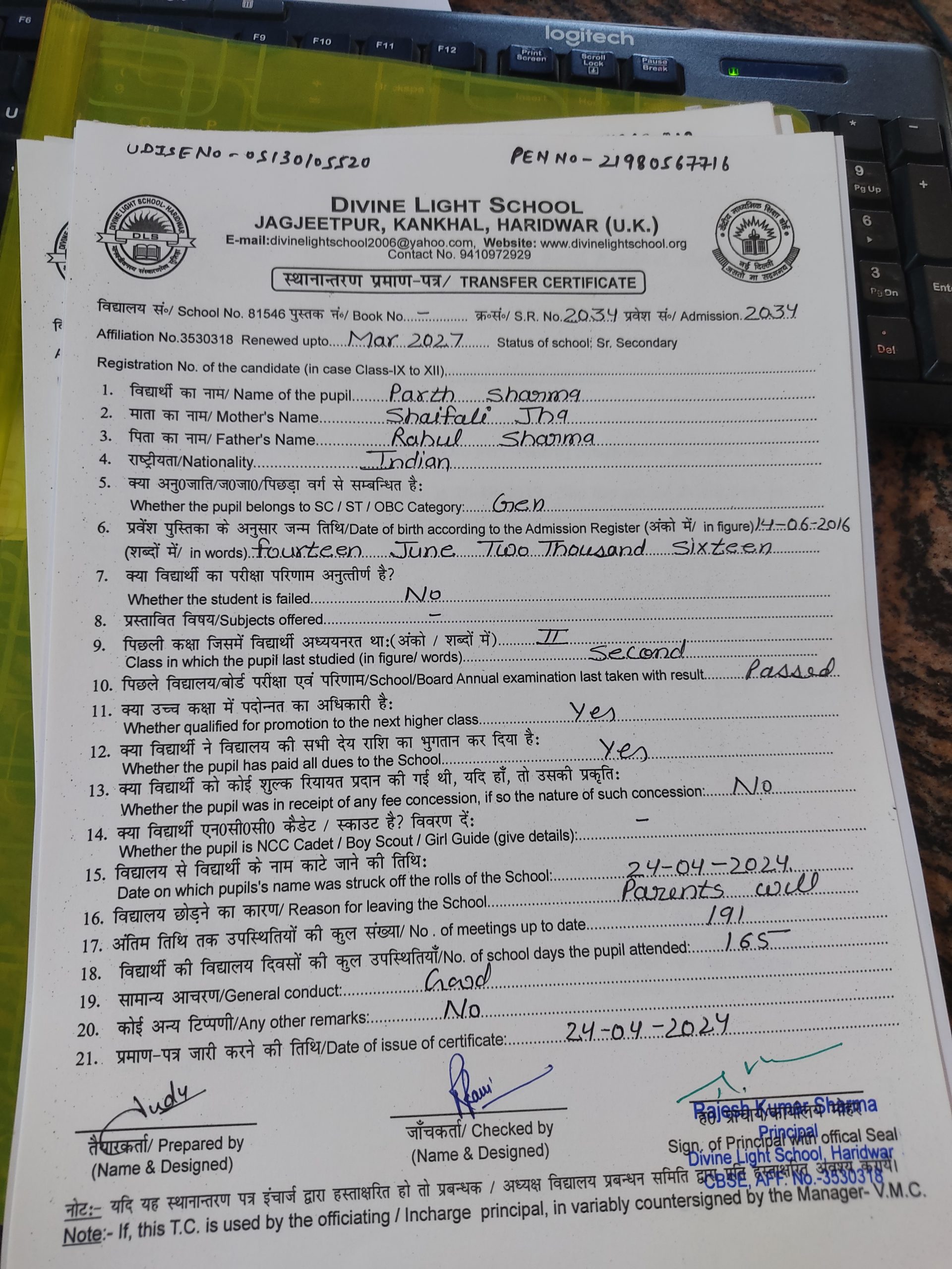 | PARTH SHARMA | 2034 | 36 | Download TC |