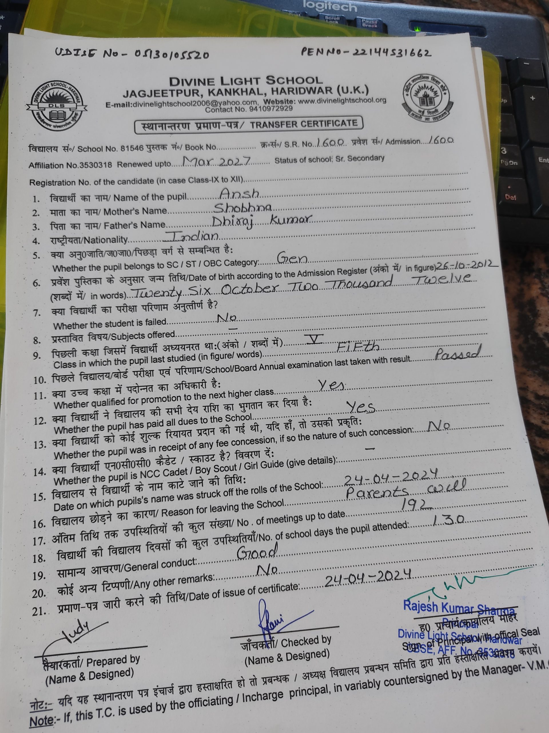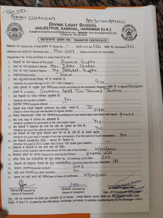 | Aayansh gupta | 1765 | 02 | Download TC |